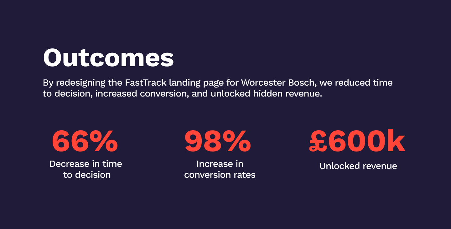 This project helped increase conversion rates by 98%, increase completed orders, and unlock £600,000 of revenue for Worcester Bosch.